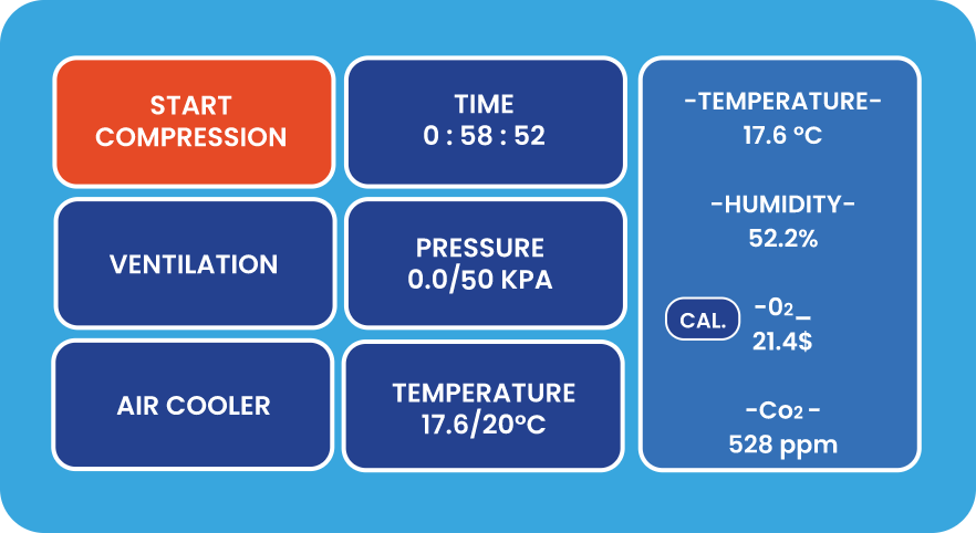 이관 기능이 약한 소아나 고령 환자를 위해 가압 속도를 0.1 ATA 단위로 미세하게 조절할 수 있는 ‘Slow-Ramp’ 모드를 지원합니다. 이를 통해 기압성 중이염(Barotitis Media) 등의 부작용을 예방하고, 환자의 상태에 따라 가장 편안한 치료 압력 도달 시간을 설정할 수 있습니다.