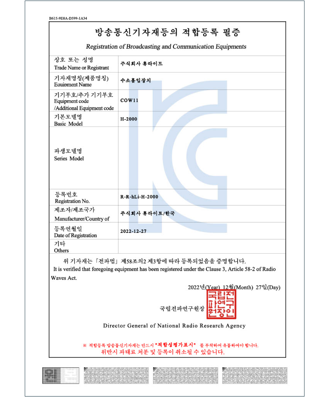 수소는 저장하지 않고 생성 즉시 배출되므로 폭발 위험이 없습니다. 또한, 체내에 축적되지 않고 호흡을 통해 자연 배출되므로 과다 흡입 부작용이 보고된 바 없는 안전한 물질입니다. (FDA, CE, KC 안전 기준 충족)