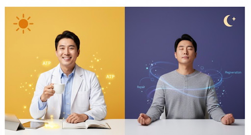 • Morning (6–10 a.m.): Mitochondrial biogenesis pathways (PGC-1α activity) peak. PBM here can maximize ATP amplification.