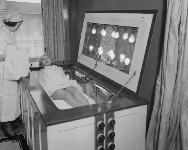 Below are heating devices from Germany, developed when there were no medical LEDs, that used incandescent lamps for heating and water to cool heat.